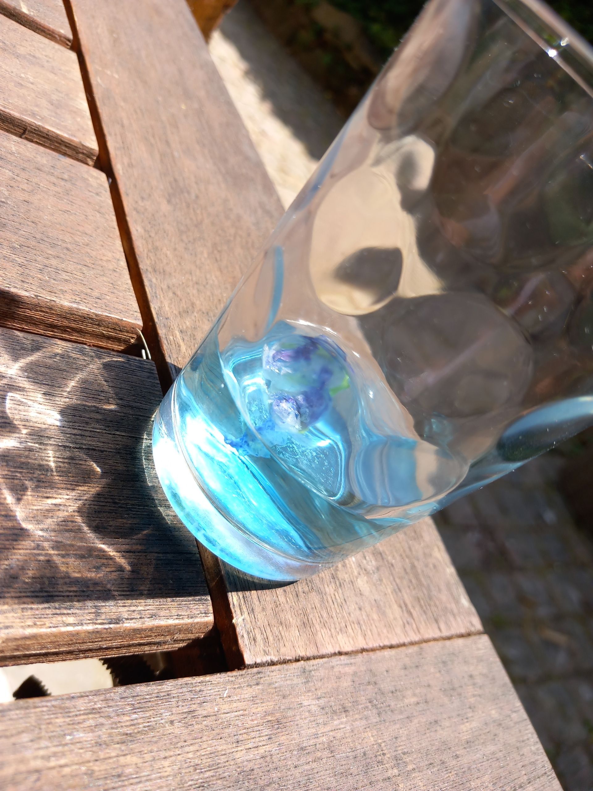 Gibt man die Blüten in Wasser zaubern sie auch hier, diesmal entsteht ein wunderbares Blau.